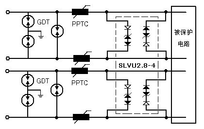 器件选择参考:GDT: 2R090TA-5/8PPTC: JK250-145UTVS: SLVU2.8-4